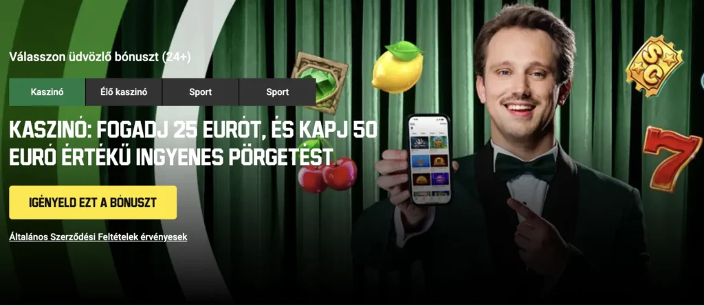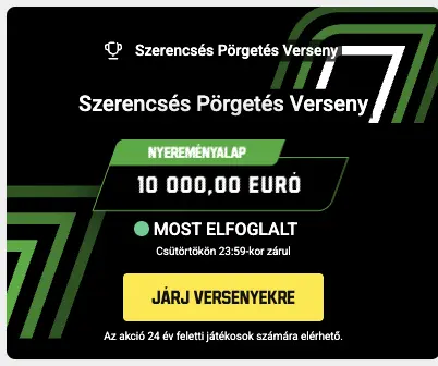 Az üdvözlő bónuszunk része egy ingyenes 9 000 HUF fogadásépítő és egy másik 9 000 HUF értékű kaszinópromó. Ehhez legalább 4 500 HUF befizetése szükséges.