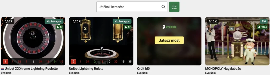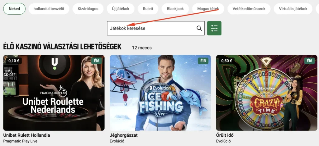 Ha ki szeretnéd próbálni az Uni bet élő kaszinó játékok világát, csak lépj be az élő kaszinó lobbyba. Használd a keresőt, ha konkrét játékot keresel, ha pedig nem, egyszerűen böngéssz és válassz egy tetszőleges asztalt. Fontos, hogy olyan asztalt válassz, amely megfelel a téthatárodnak és a kívánt játéktípusnak.