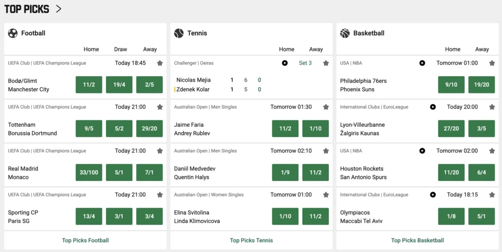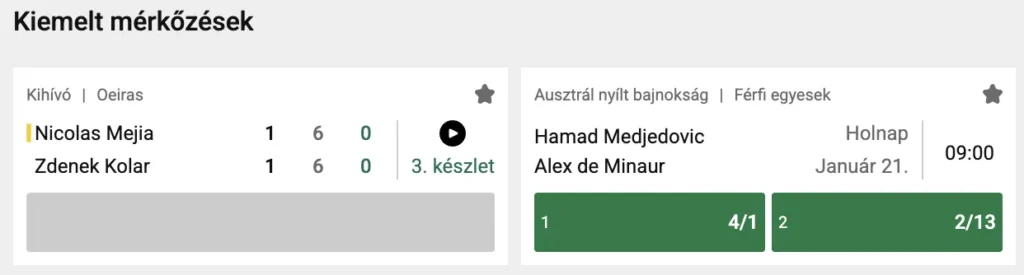 Pontról pontra történő élő frissítések tájékoztatják a rajongókat a mérkőzések alatt. A felszíntípusok befolyásolják az oddsokat – salakos specialisták kontra keménypályás játékosok. A visszavonulási szabályok befolyásolják a kiegyenlítéseket, egyértelmű feltételekkel felvázolva. A platform mind az egyéni, mind a páros versenyeket lefedi a férfi és női sorsolásokban. A gyors fordulók gyors elszámolásokat jelentenek. Ha egy játékos fáradtnak tűnik, azonnal lehet ellene fogadni.